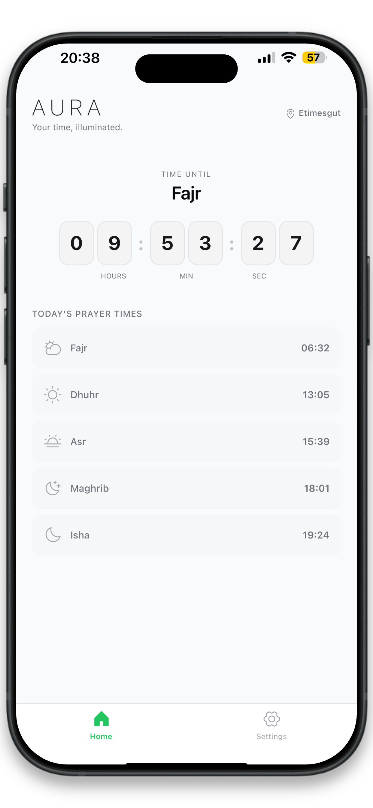 Download Aura and illuminate your daily routine with beautiful, accurate prayer times.